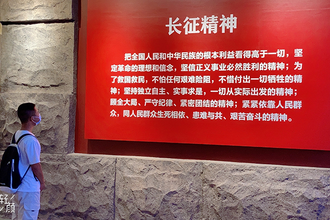 参观旧址,用长征精神感悟初心。为了感受那个战火纷飞的年代,体会长征时的艰苦卓绝,实践团成员李长辉和潘英豪等来到遵义市遵义会议旧址进行参观学习。走进陈列馆,看着一件件历史资料和实景,听着讲解员的描述,当年召开的遵义会议好像历历在目。