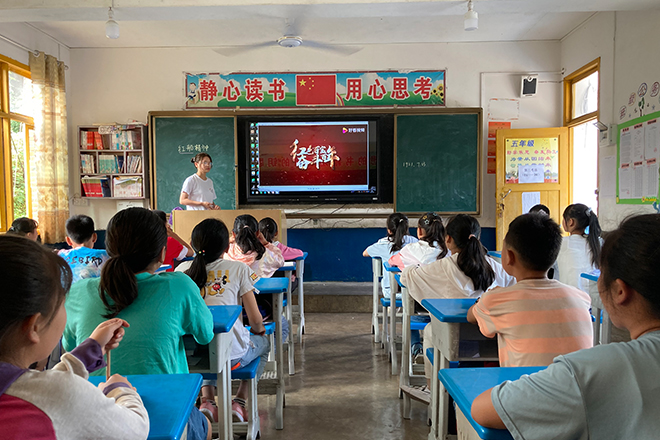 教学相长,使爱党情怀扎根心中。在日常的支教活动中,由申芷欣同学担任专职党史教育老师,用生动的语言给学生讲解共产党的奋斗历程以及众多伟人的英雄事迹。这些红色圣地长大的孩子们从小对党的故事耳濡目染,并不陌生,通过老师深入的讲解让孩子们对共产党产生了更加浓厚的兴趣。相信在以后的成长中,他们能对课上的内容有更深一步的理解,对党的热爱也会更加深沉。